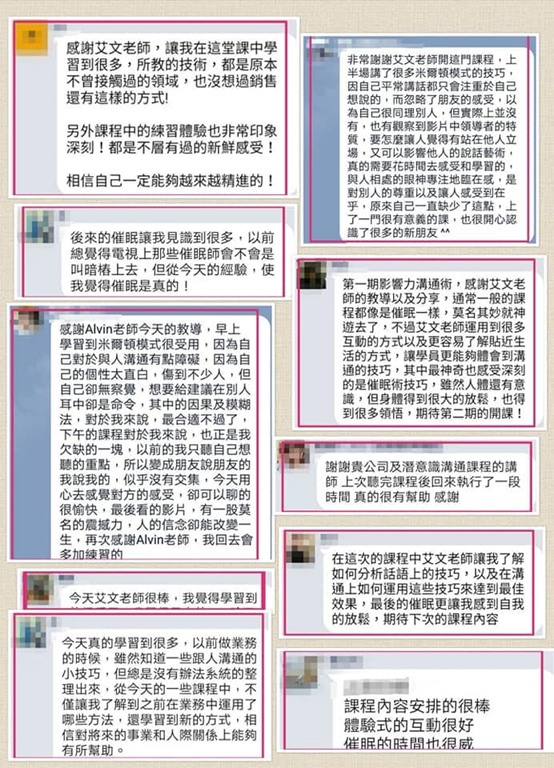 Ans:相信每個課程的講師都有其優勢與特色,而本課程的特色在於運用『NLP』(神經語言程式學)與『催眠』的原理,協助您建立『不推而銷』的溝通系統,讓人主動找你買單,不用你開口!