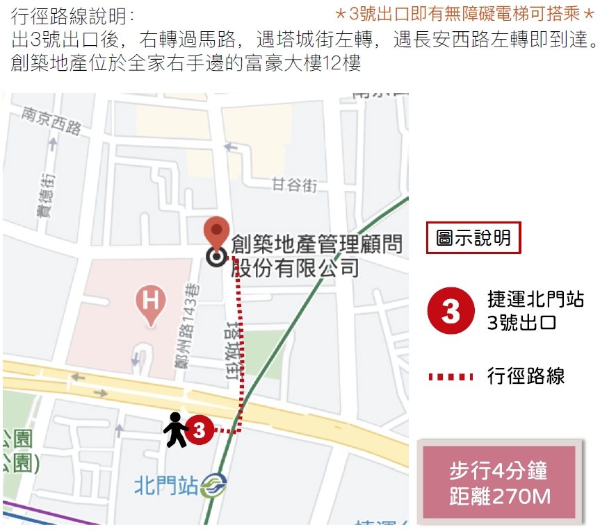 地點:台北市大同區長安西路342號12樓(北門捷運站步行4分鐘,創築地產教室)