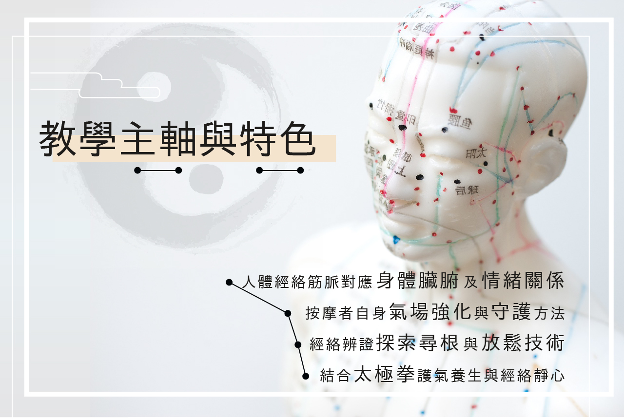 五、專業手法示範教學、一對一手法實作、太極拳練習、經絡靜心體驗分享。