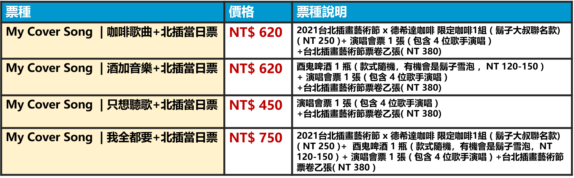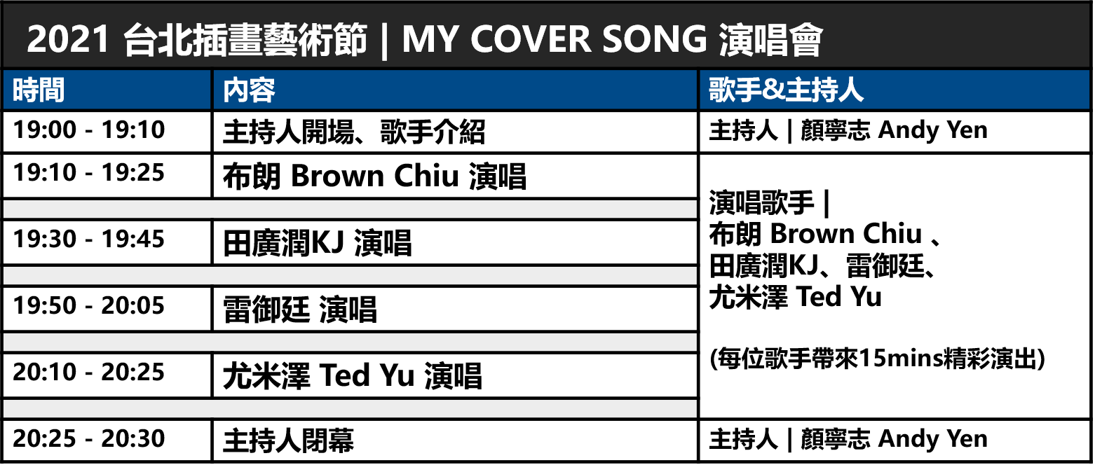 2021第四屆台北插畫藝術節活動,為延伸策展主題『封面故事:Cover Story』,特別合作誠品電影院,於11/14(日)共同舉辦周邊演唱會活動『My Cover Song』 。