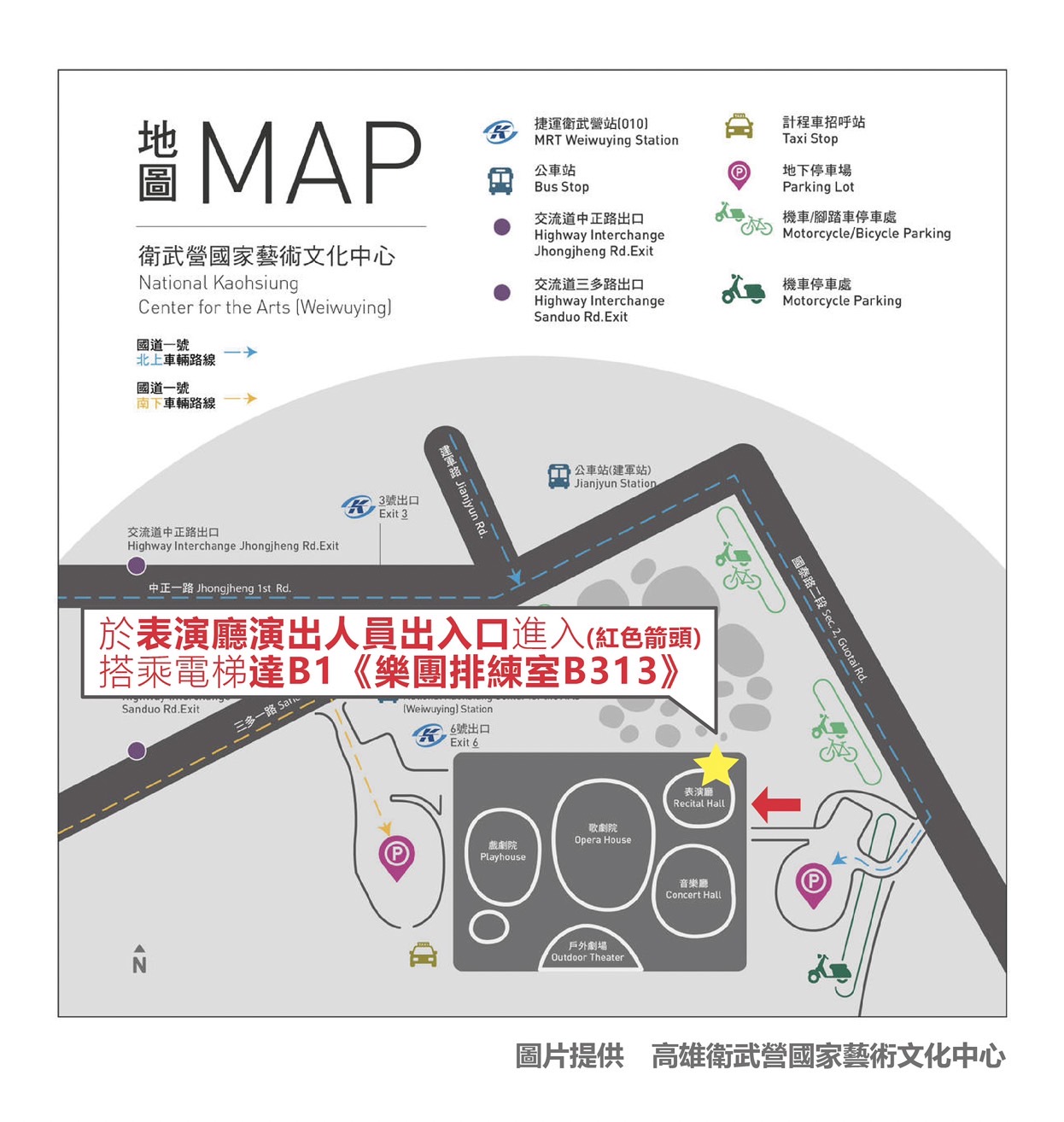 2.參與人員當天請從衛武營表演廳演出人員入口處,換取後臺工作證進入會場。