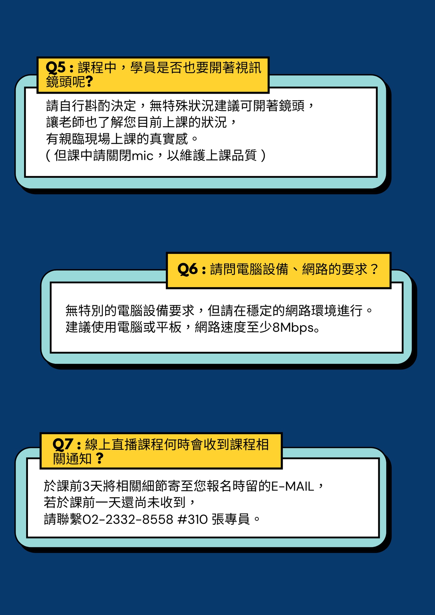 ▲本次課程採"實體"與"Google meet"同步進行,學員可於報名表上選擇上課方式。