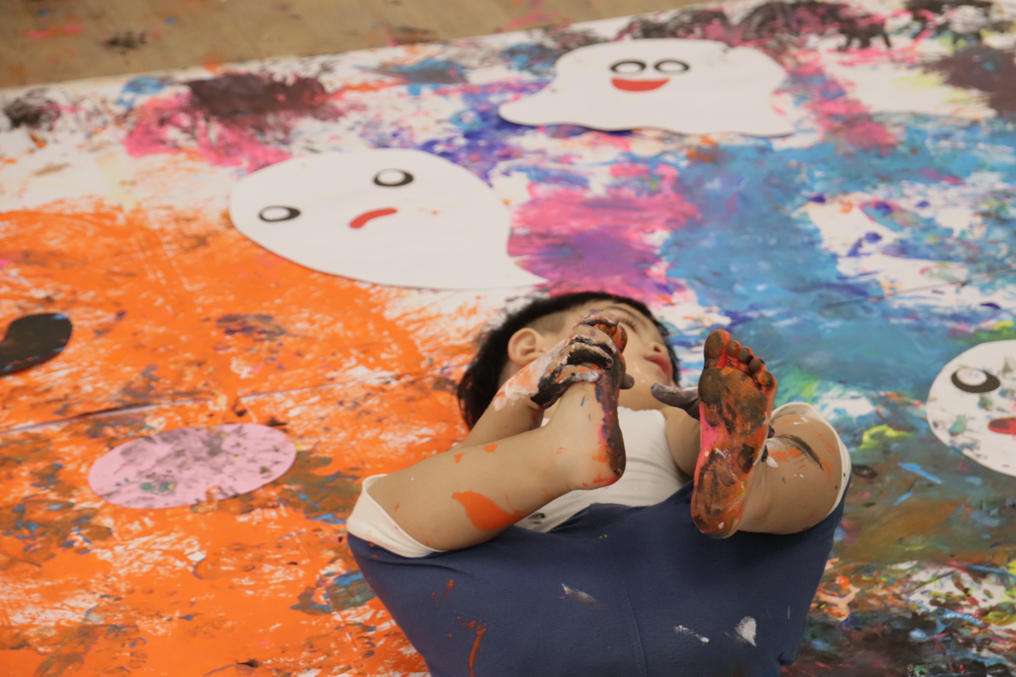 讓孩子肆意妄為的在手上腳上穿上彩色顏料,