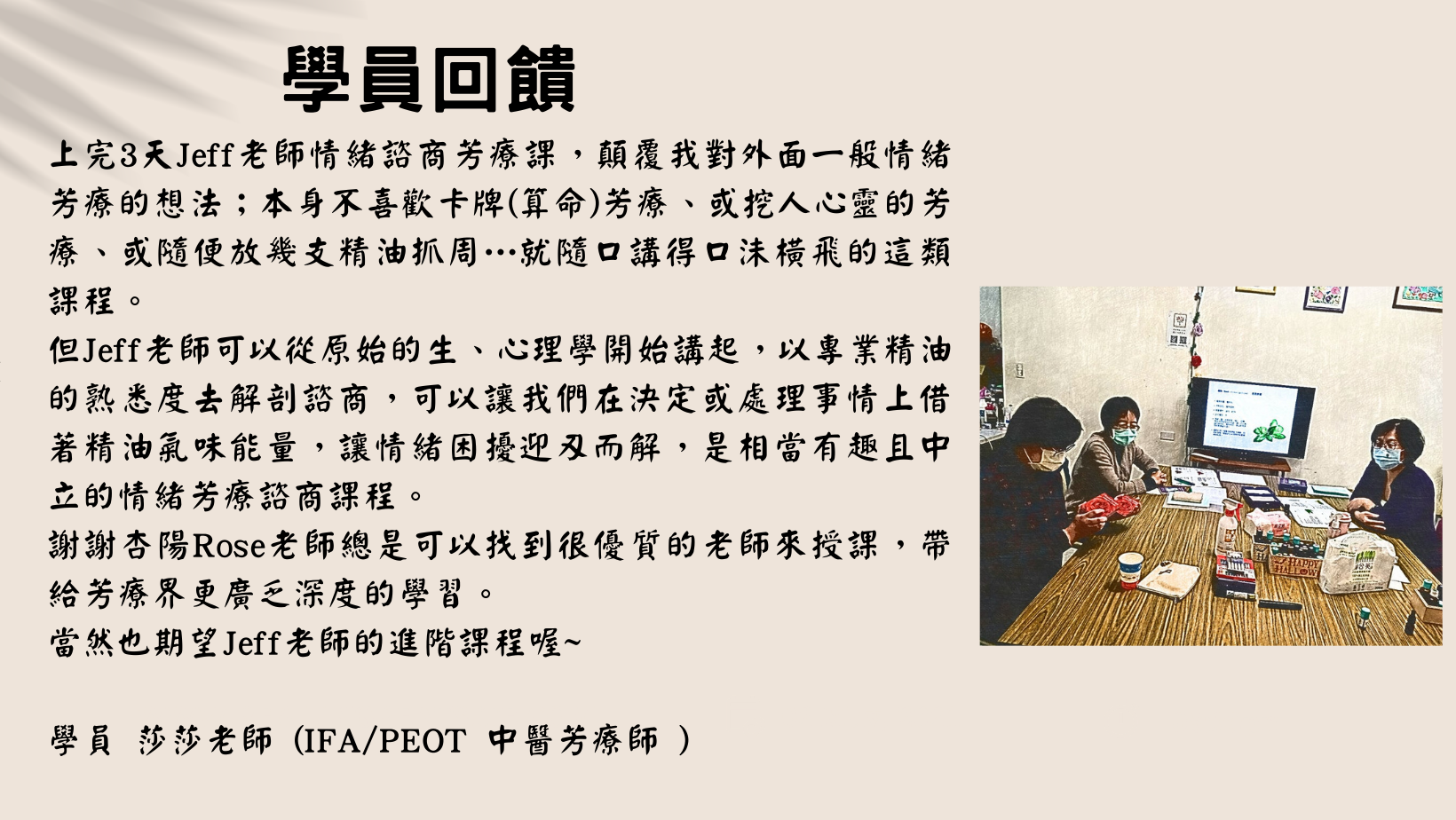 (費用包含講師費、場地費、使用精油、講義費用等,不含精油洞悉卡費用)