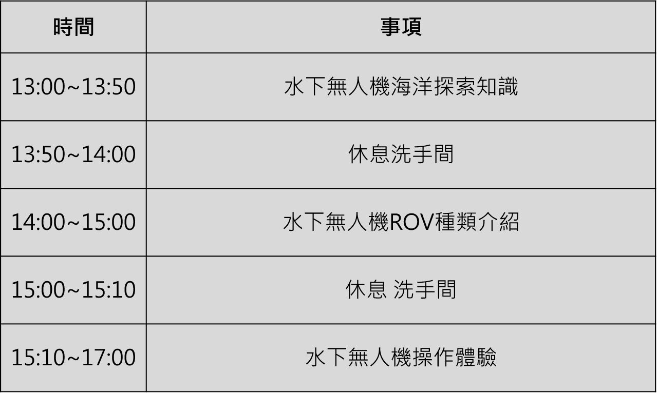 - 操作Mini GP_ROV時會佈置一個縮小版海洋探索區,內容包括:探索海底生物、觀看珊瑚、至水下無人機工作站停靠、查修離岸風機等,讓參與的小朋友可以透過遊戲來學習水下無人機相關作業知識。
