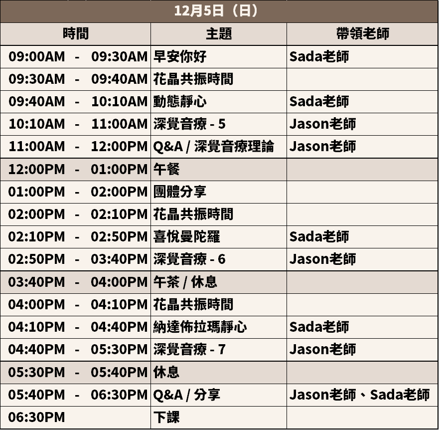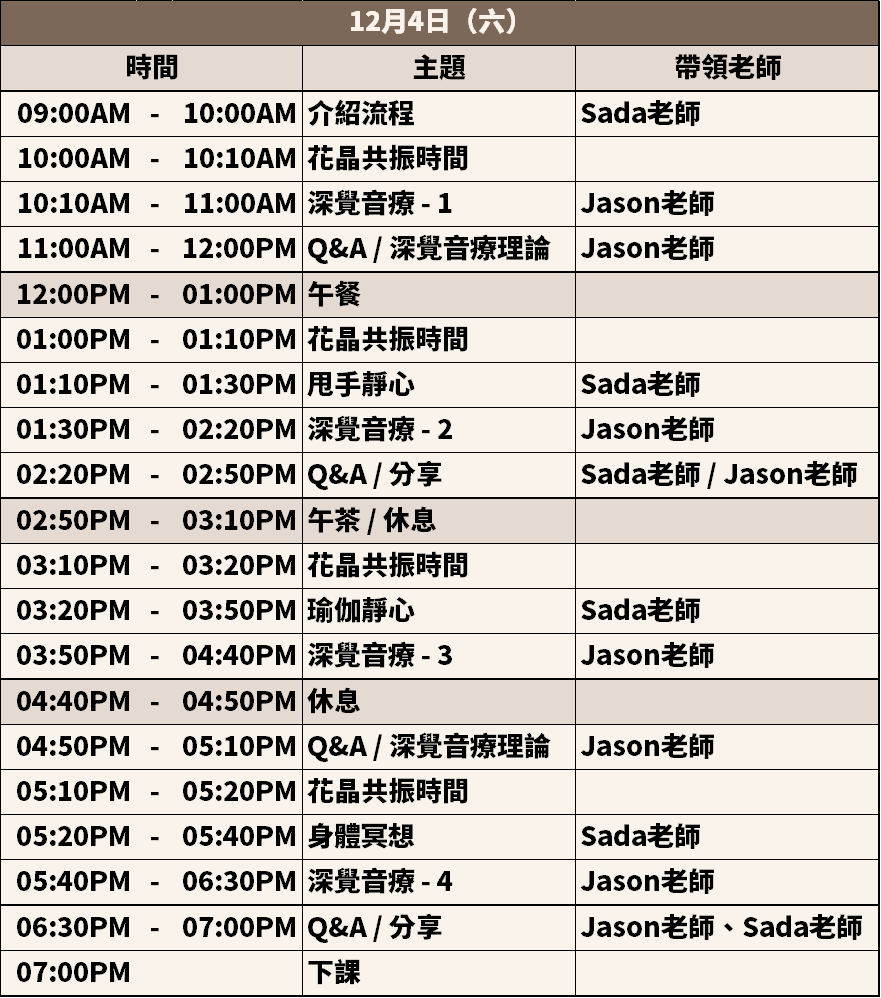 12/5 (日) AM 9:00 - PM 6:30(主辦方將提供兩日午餐)