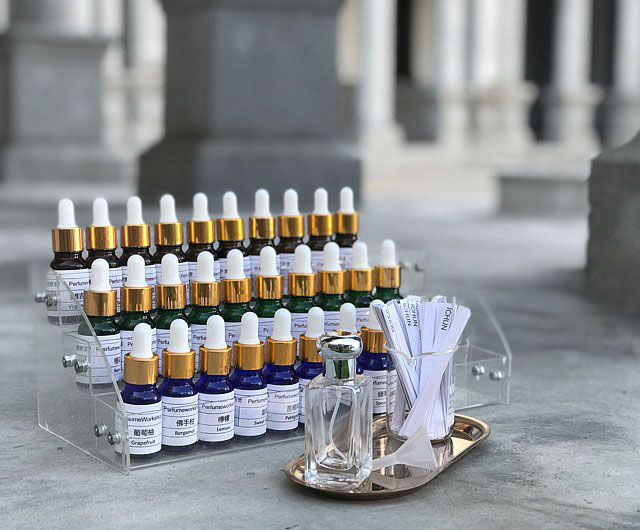 現場也準備 30款香氛原料,依序進行 品香 與 介紹 ,而後由學員自行依照喜好進行調配,調香紀錄表可保存於日後再自行調製。課程後可帶回50ml精美擴香與包裝。