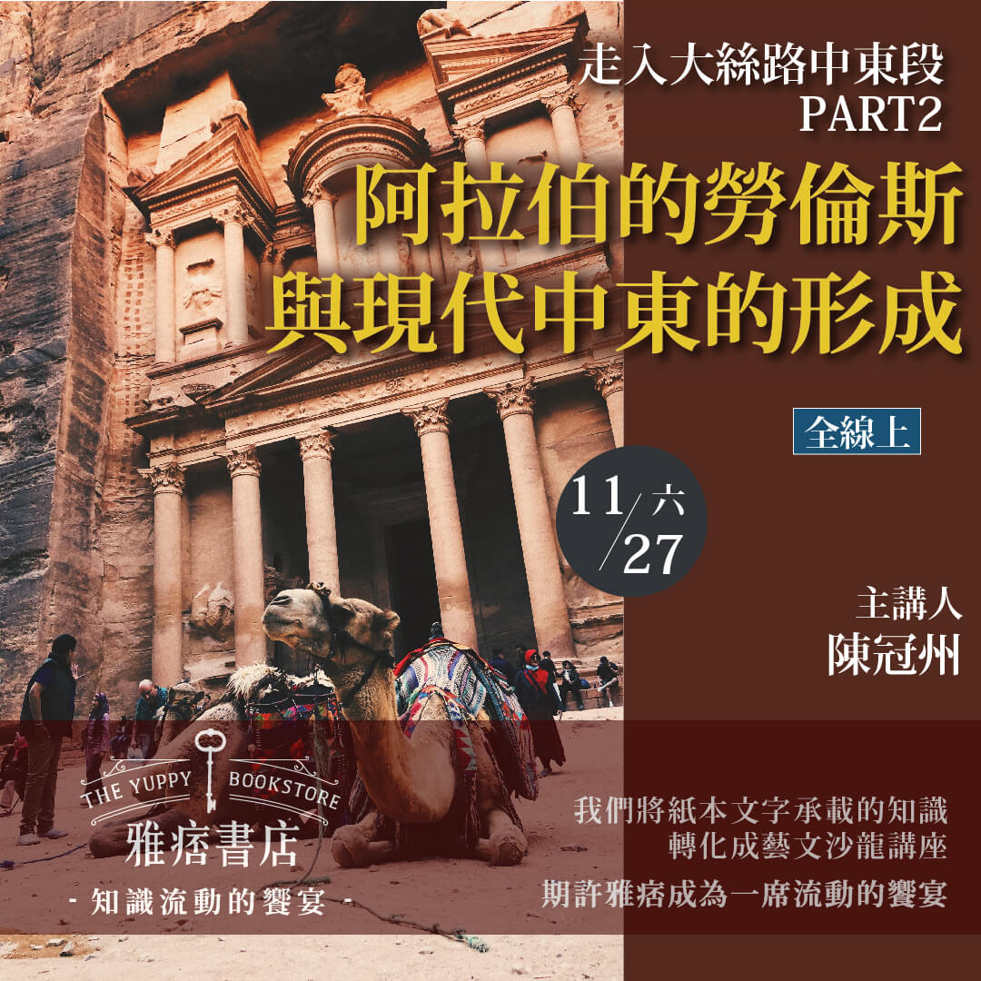 本場講座帶大家深入了解中東地區的文化與現實,從阿拉伯勞倫斯的英雄故事開始,一步步探索中東文化的形成。適合對「阿拉伯文化」與「文化旅遊」有興趣的人參加。