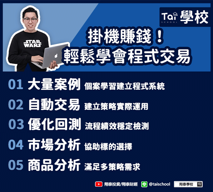 1.透過實質老師案例帶大家建立策略並實現自動交易,站在巨人肩膀並打破流言!