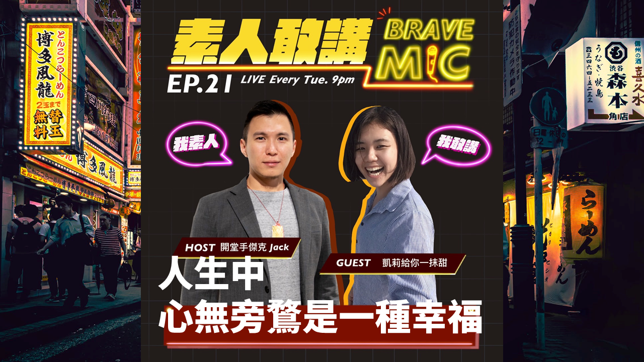 【開堂手傑克 Jack the Advisor】 ⏰ 敢講時間: 2021/11/30(二)21:00-22:00 💻 參加方式:活動會以ZOOM直播進行實作產出,請自行下載好ZOOM 。 📩 敢講主題:我在一直追著夢跑的旅程中 🔎 開堂秘辛:人生中的心無旁鶩是一種幸福 |