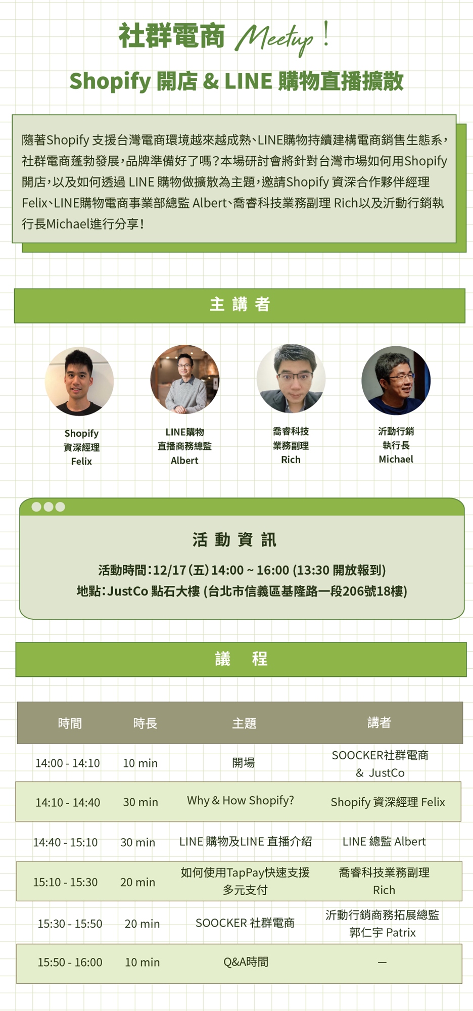 社群電商 Meetup - Shopify 開店 & LINE 購物直播擴散