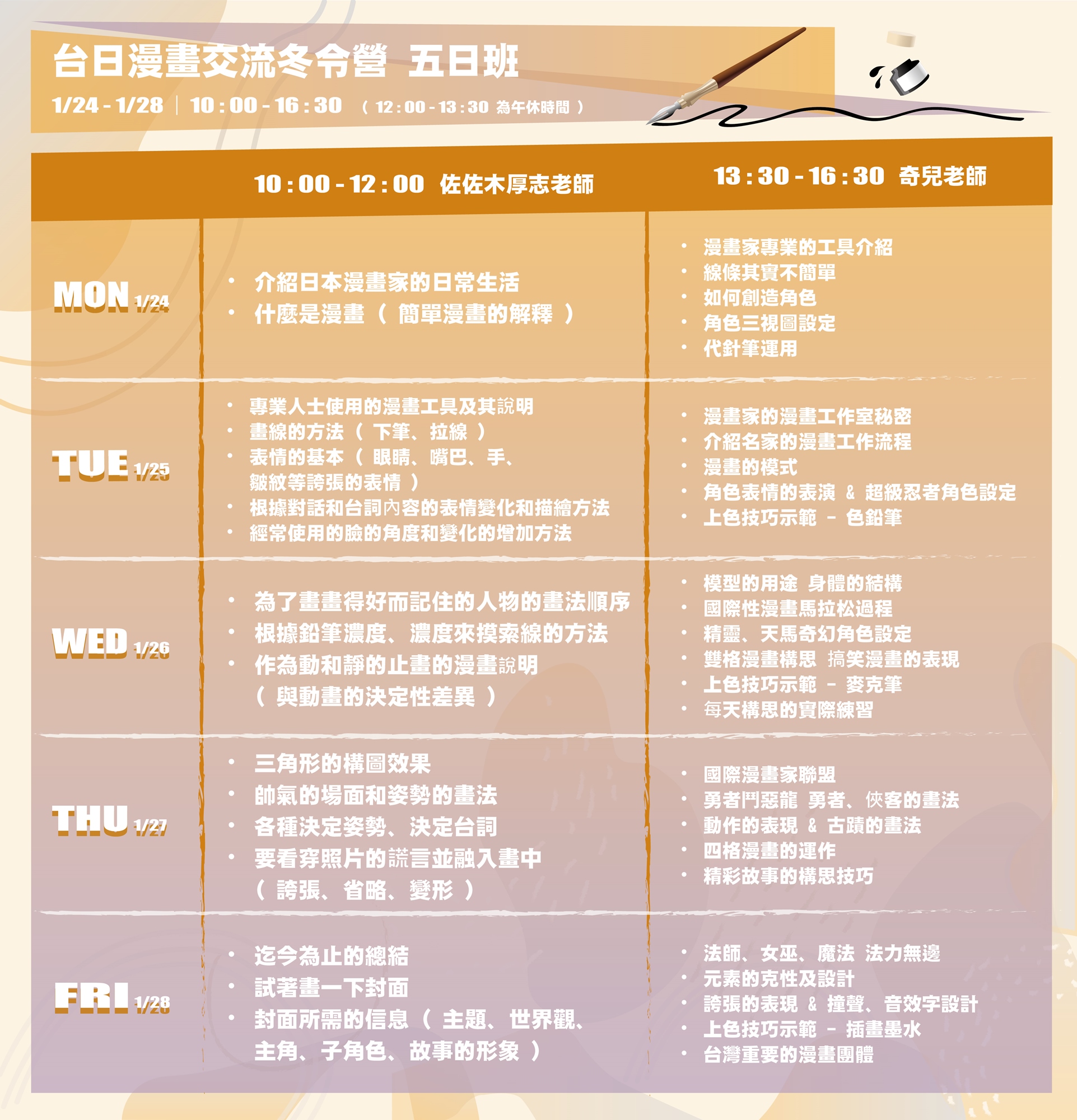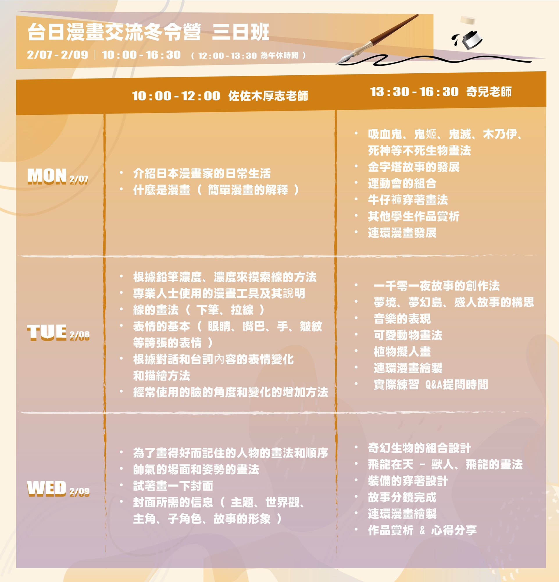 // 線上漫畫夏令營課表 //