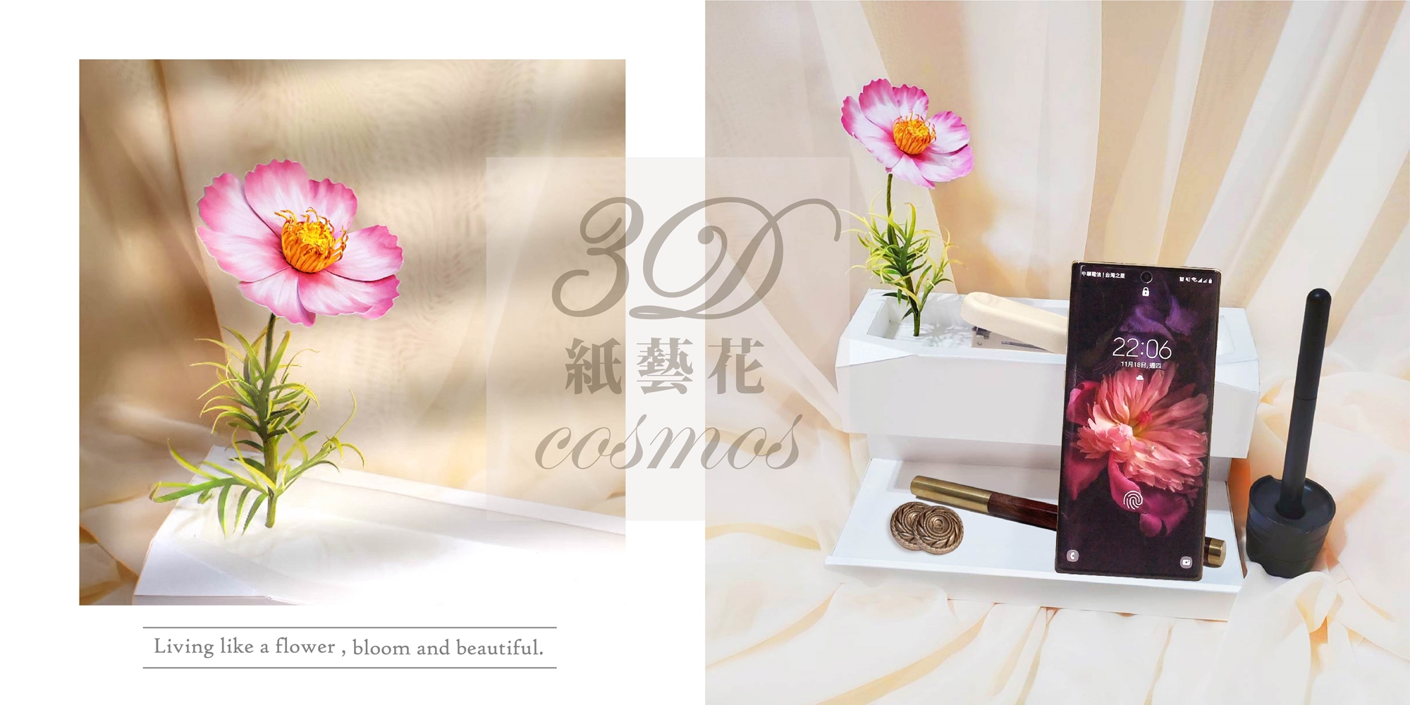 手作紙藝花(大波斯菊),與3D紙模型,