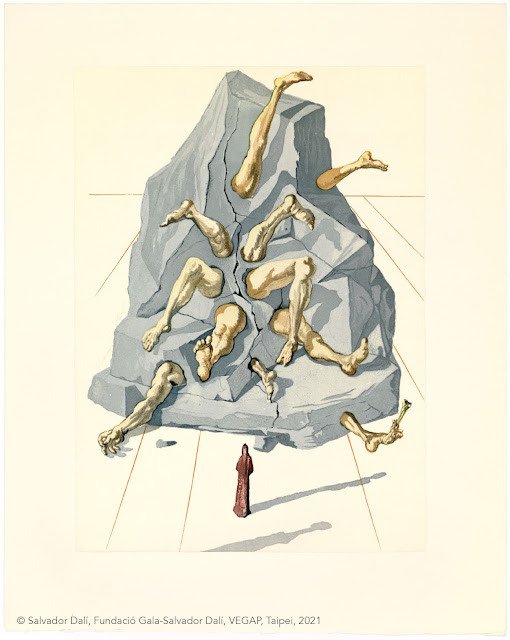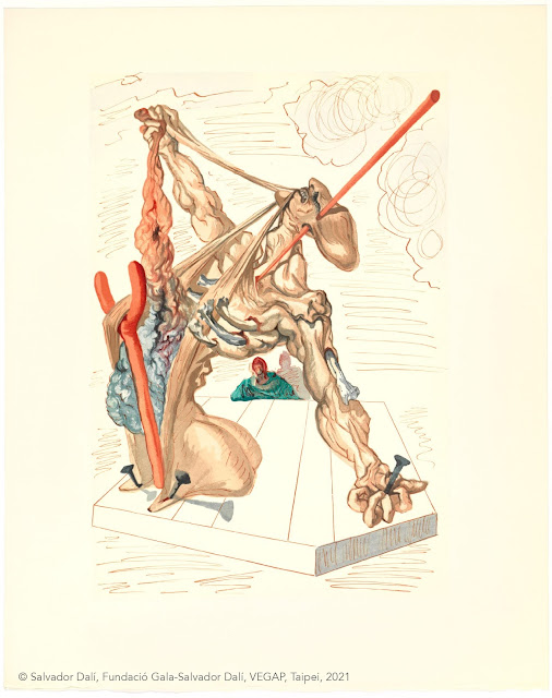 達利根據但丁的名作《神曲》創作了一系列100幅畫,包含地獄、煉獄、天堂等三大篇章,深具達利細膩、荒誕且超現實的個人特色。