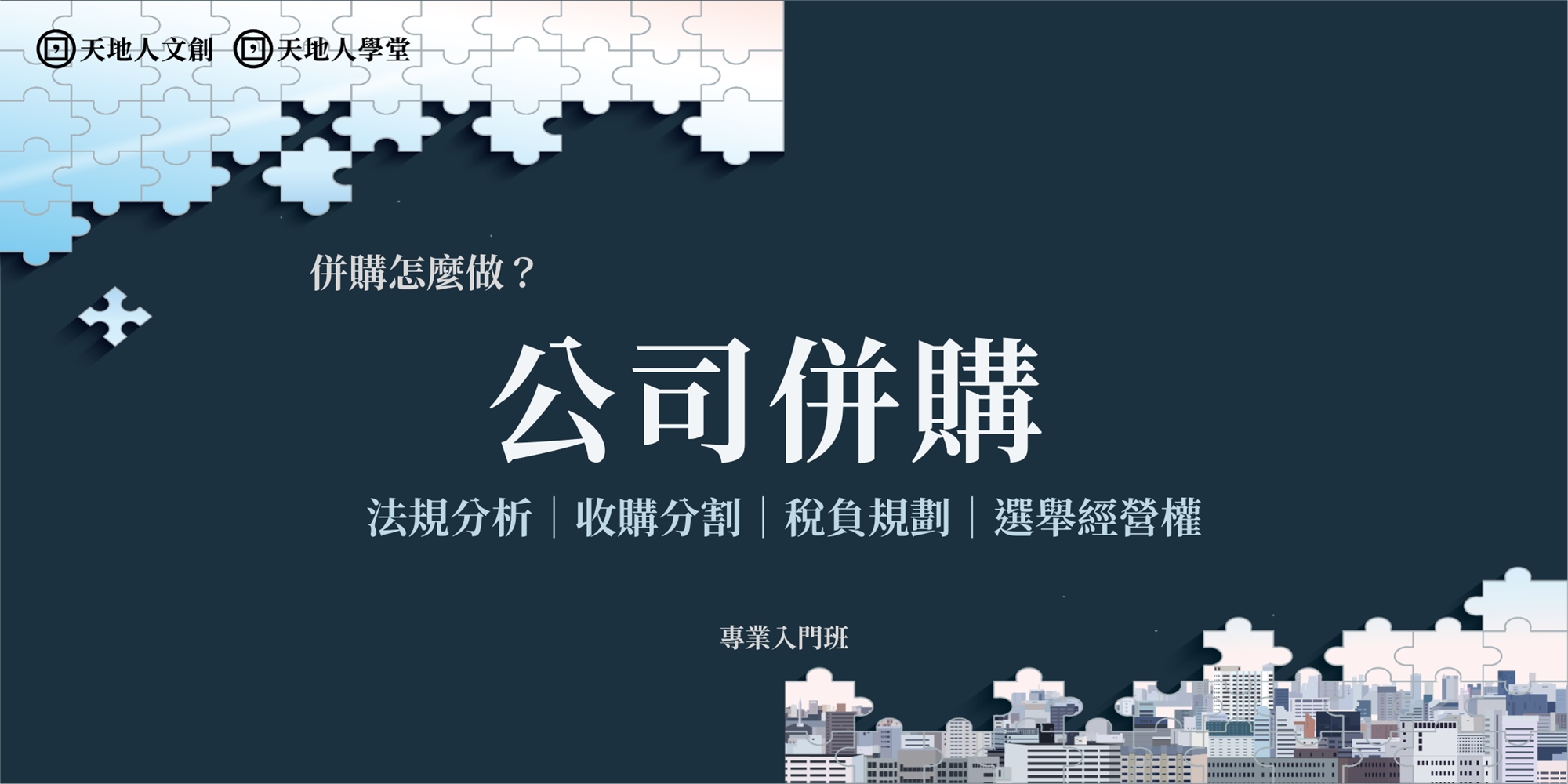 未上市櫃公司,若有機會引資,要如何談判董事席次?與他公司合併或換股,一起上市?實務上常見私募、借殼上市,用途與意涵分別是什麼?如何合理合法下使用?董監事在併購的角色與責任有哪些?例如,策略的督導、程序的掌握、價格的評估、資源的整合等,更重點在於不同併購型態上,董事會與股東會的股權轉換、交換的決議,既存公司或新設公司的變更事項章程,提前改選或正常改選的表決權,都關乎公司主導權與投資者的權利結構,因此,如何掌握經營權?成為併購途徑的一大難題!有鑑於此,天地人學堂特地規劃出此課程,「併購怎麼做?公司併購專業入門班|從法規解析、收購暨分割模式、稅負規劃到選舉經營權實務」,邀請元富證劵承銷部副總經理親授課程,業師專注資本市場籌資與併購業務超過20年,曾任臺灣證劵交易所、中華開發、台証綜合證劵、京華證劵承銷部、新光人壽綜合等多家證劵行,專長為企業併購、投資評價及談判、申請上市與掛牌,以實務引導理論之領會,讓公司管理者、財務主管、或想要考取會計證照者,能奠定良好評價專業基礎,具備多年豐富落地實務經驗。本課程將從零到一學習:(1)掌握企業併購法基礎法制,提供多元併購方式與簡化程序;(2)解析企業併購流程,從規劃、協商、執行、整合到併購綜效與租稅權益;(3)剖析公司資源整合後,改選對經營權之影響,董事會與股東會關係結構。業師運用方法學、系統化整理繁瑣細節的企業併購之原理,引導學員循序漸進掌握併購策略與運作。