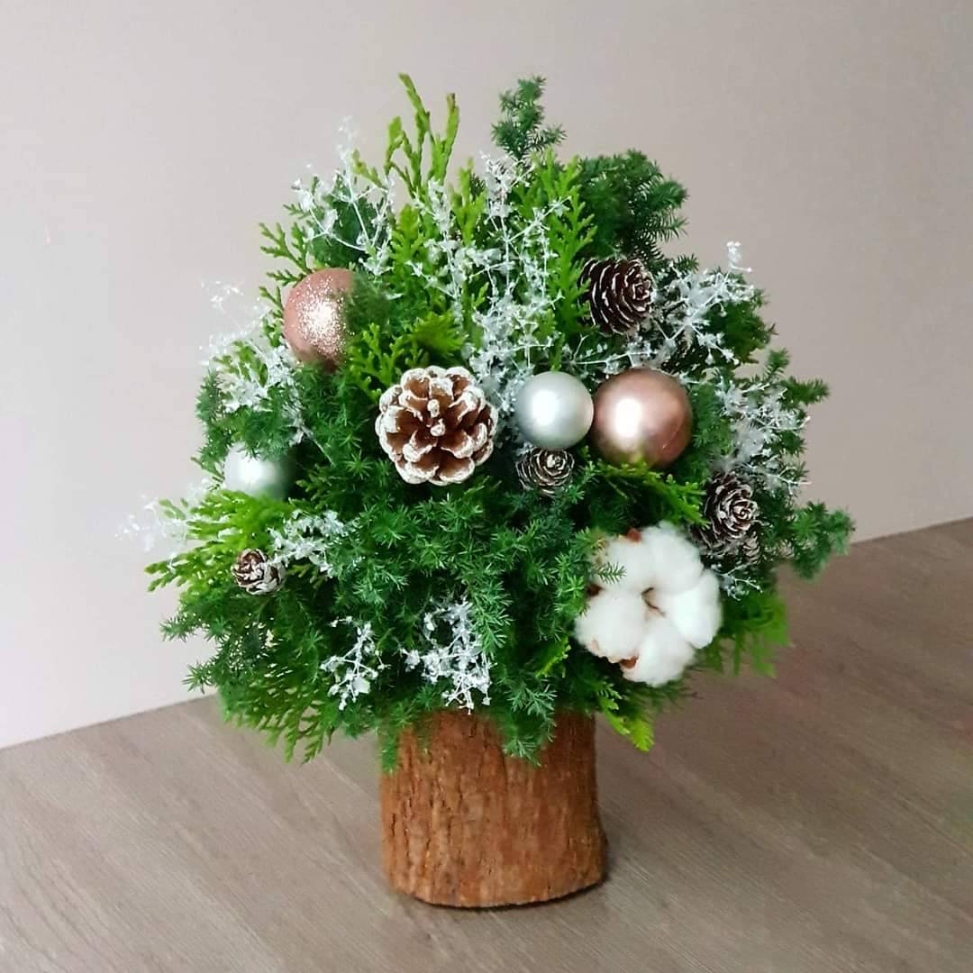 製作材料:新鮮雪松、柏類葉材棉花、松果、聖誕球、其他花材(新鮮花材依照市場供貨採購為準)