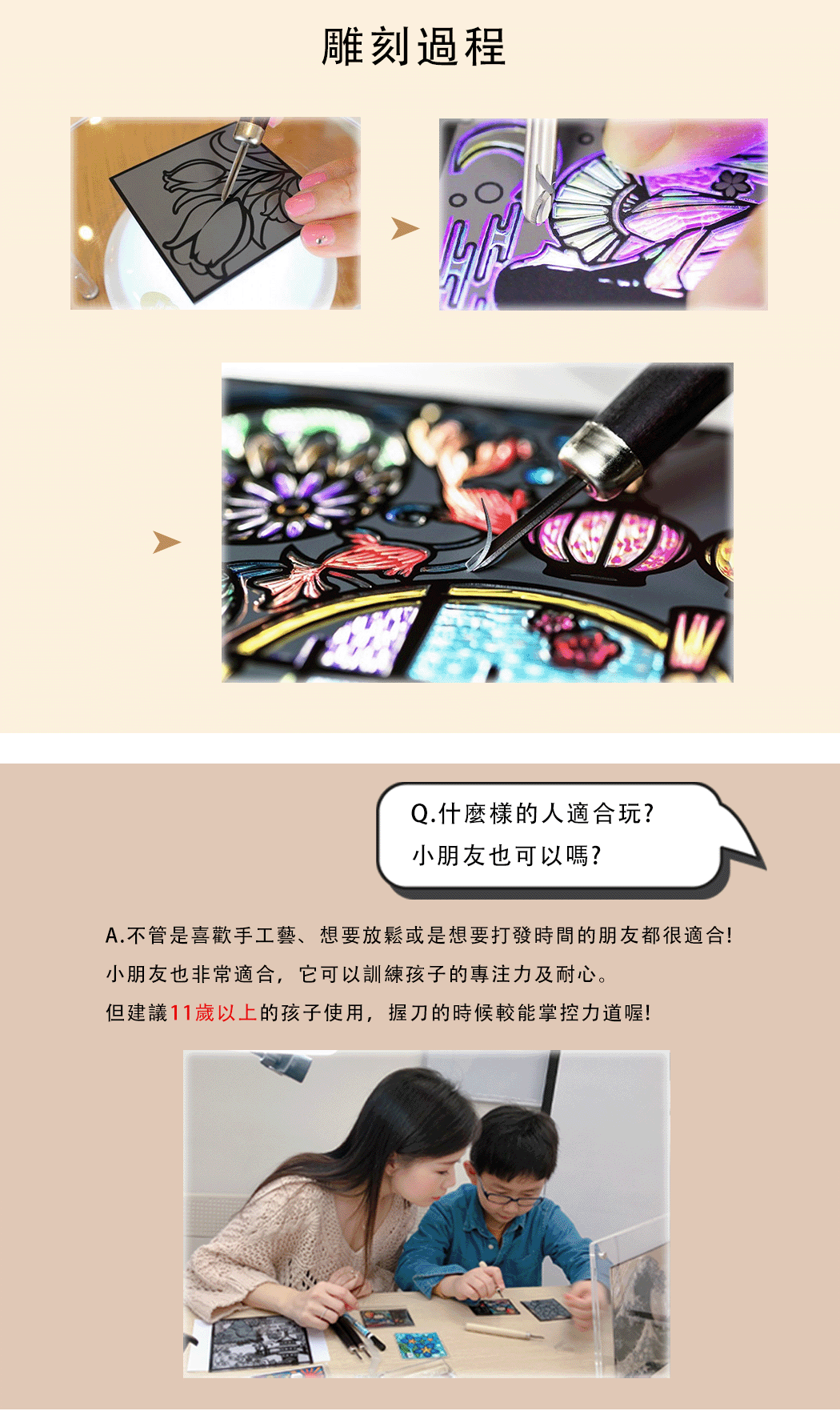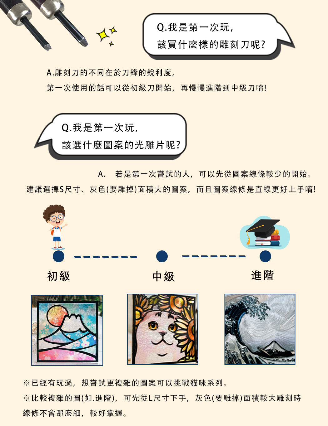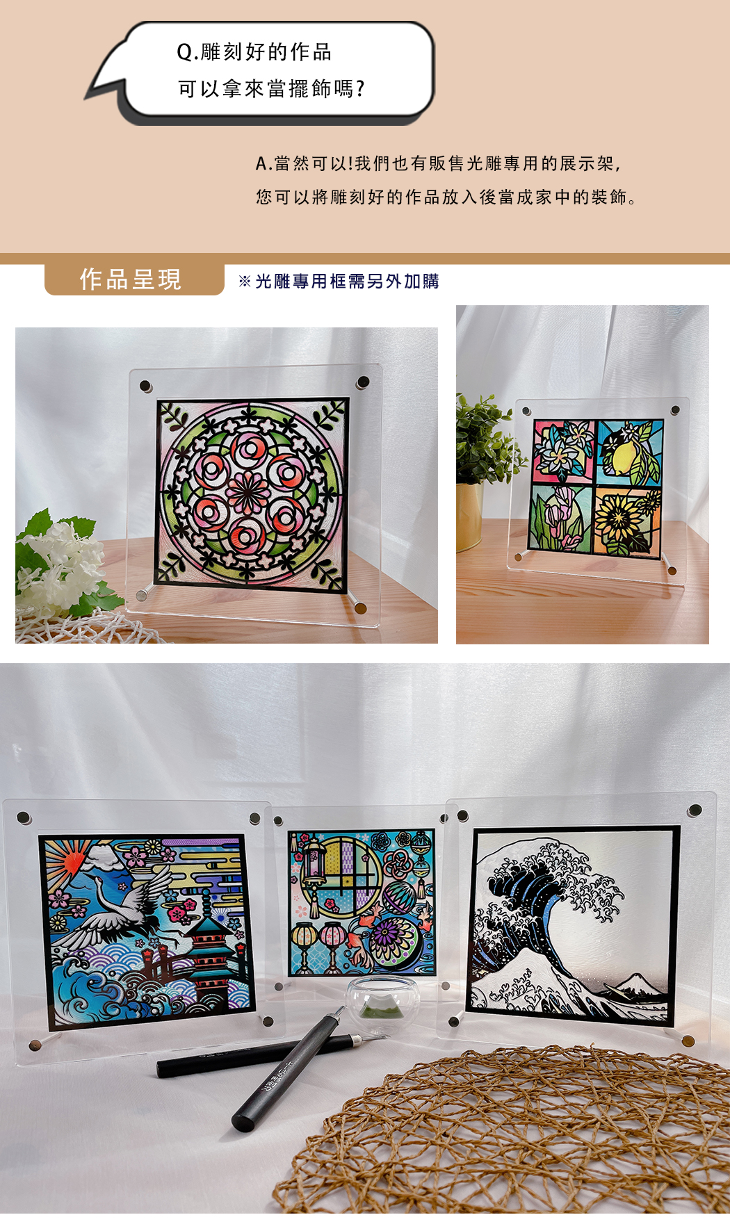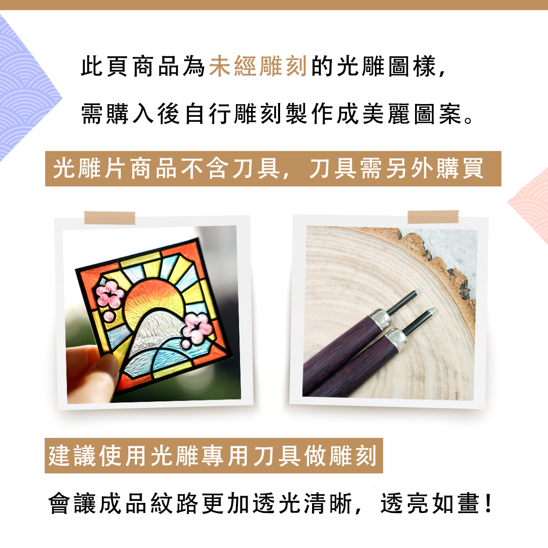【一片光雕片】+【一組雕刻刀組】+【線上教學影片(含有12種光雕技法示範)】