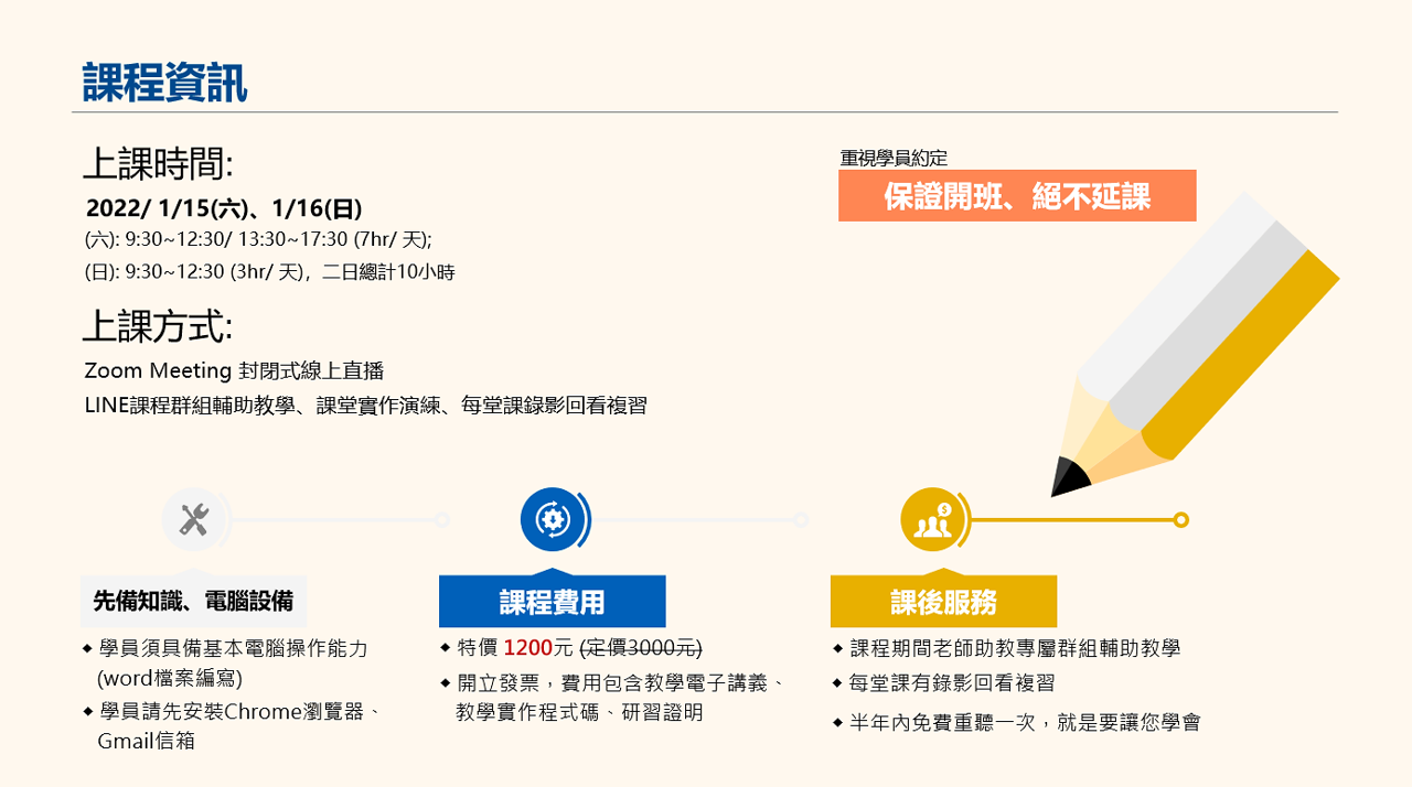 ◆ 上課時間:2022/1/15(六)、1/16(日)