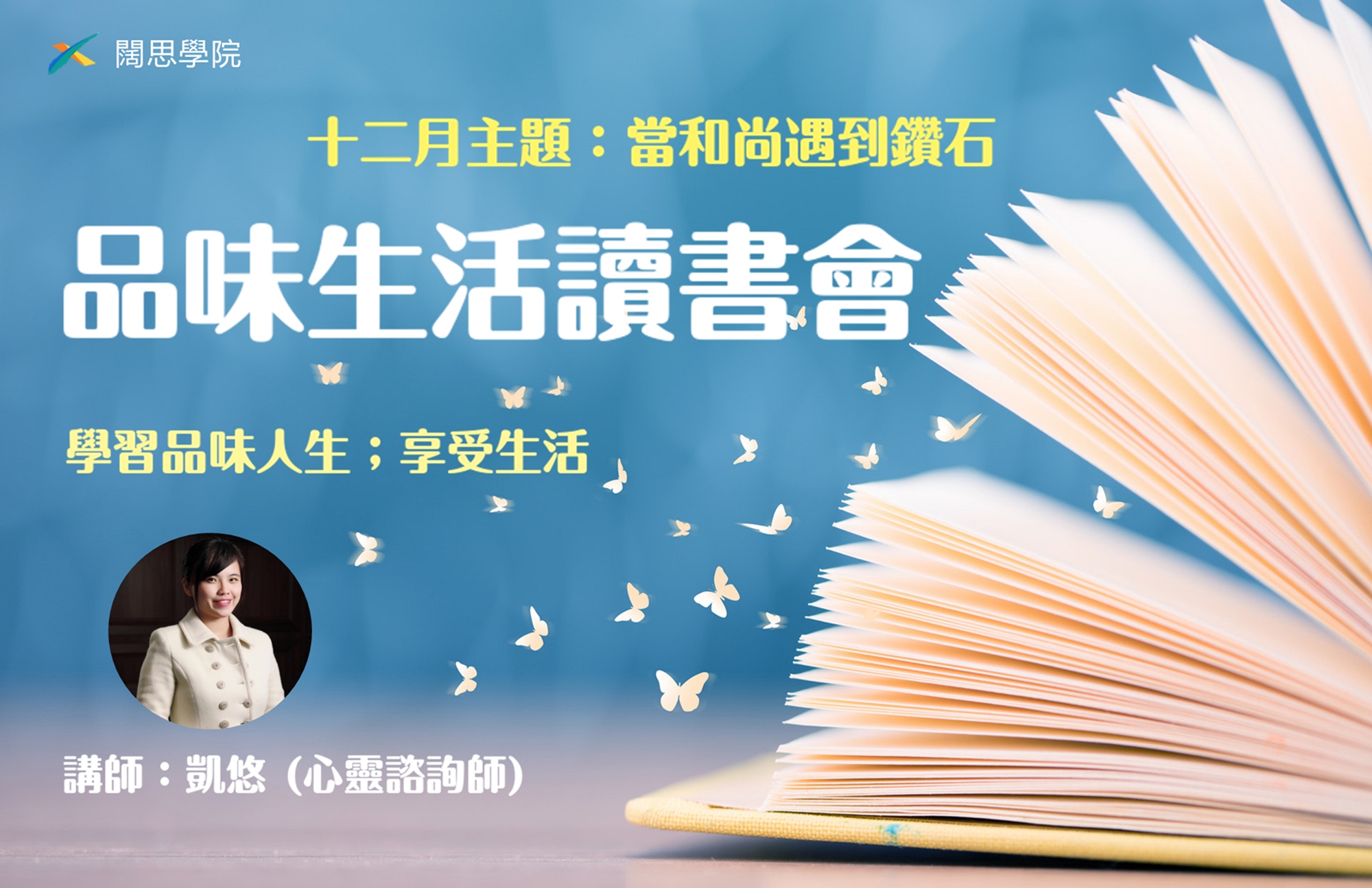 邀請《凱悠心靈工作坊》凱悠心靈諮詢師,每次選定不同主題,從心靈成長、兩性關係、家庭議題、婚姻相處、情緒壓力...等不同領域。帶大家一起學習過好生活!品味人生!
