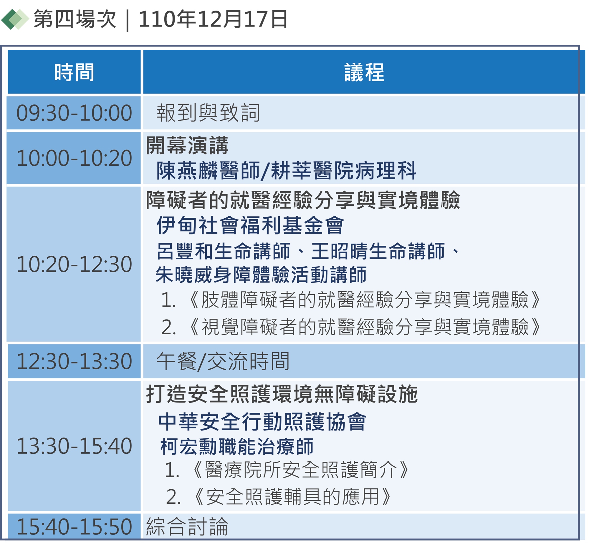 - 歡迎參與者在問答時間&身障體驗活動時,打開鏡頭與麥克風,與講師互動、交流。