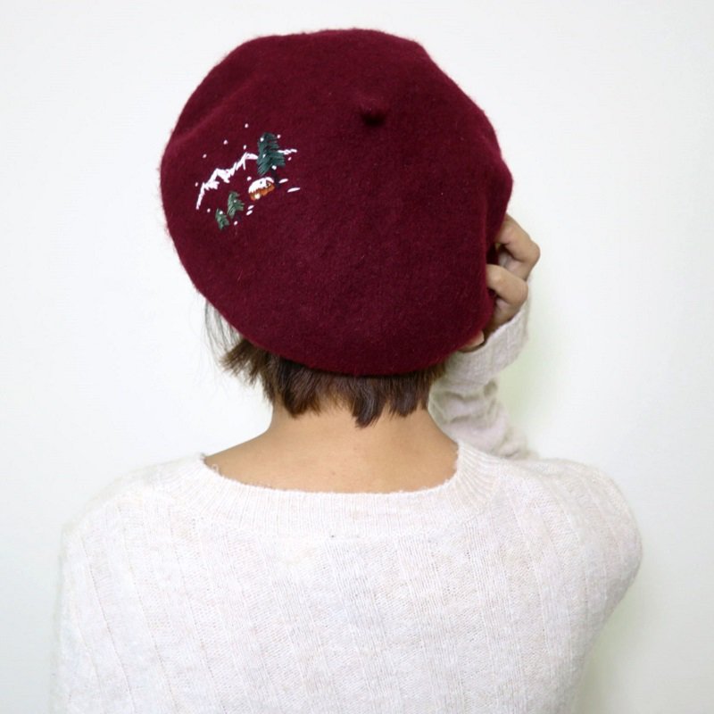 ⭐右)greensouls/手刺繡雪落在松山上羊毛帽子→溫暖的無簷羊毛帽在繡上可愛活潑