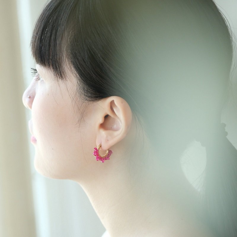 ⭐右)JieJie Jewelry/Happy circle紅寶石款耳環→用各種不同天然石點綴在耳圈上,呈現天然石最美好的一面
