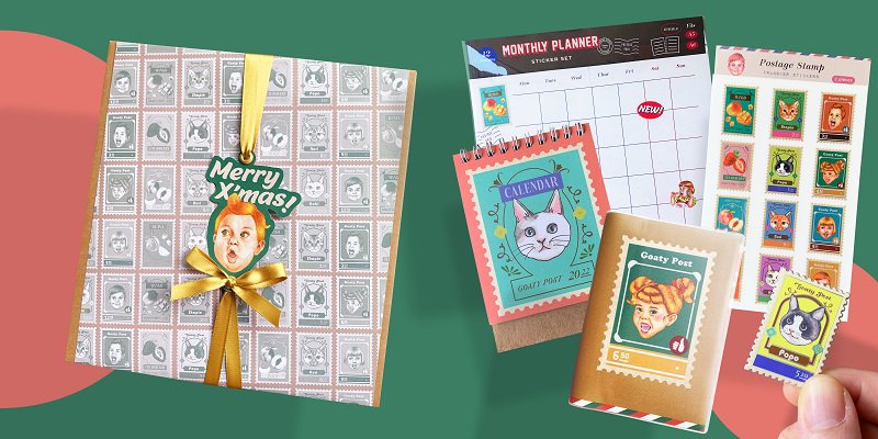 ⭐右)山羊先生/聖誕郵便禮盒組 - 超值驚喜包→包含精緻包裝,以及插畫小卡片、郵票主題插畫等多樣文具商品