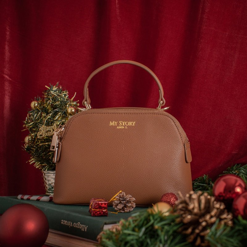 ⭐左)My Story and I/淘氣魔法使真皮手提包-棕→今年最流行的時尚手提小包,呈現甜美復古{薑餅棕色}