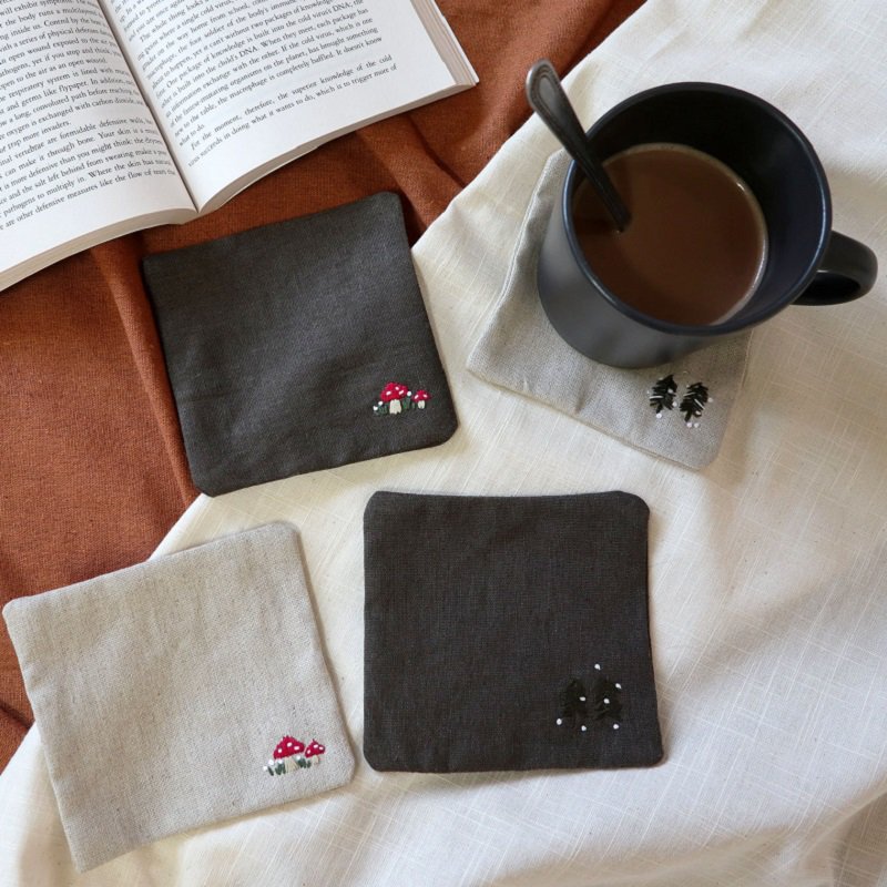 ⭐左)greensouls/手刺繡杯墊聖誕禮盒→由天然面料製成的杯墊結合可愛的刺繡,搭配禮盒超暖心