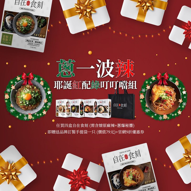 ⭐右)自在食刻/蔥一波辣~耶誕紅配綠叮叮噹組→任買四盒(需含紅+綠)送品牌訂製手提袋一只(價值79元)+官網9折優惠券