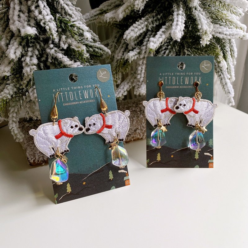 ⭐右)Littdlework/刺繡耳環、別針 冬日系列→用針線交織出動物的可愛造型,自由搭配為你的整體造型加分