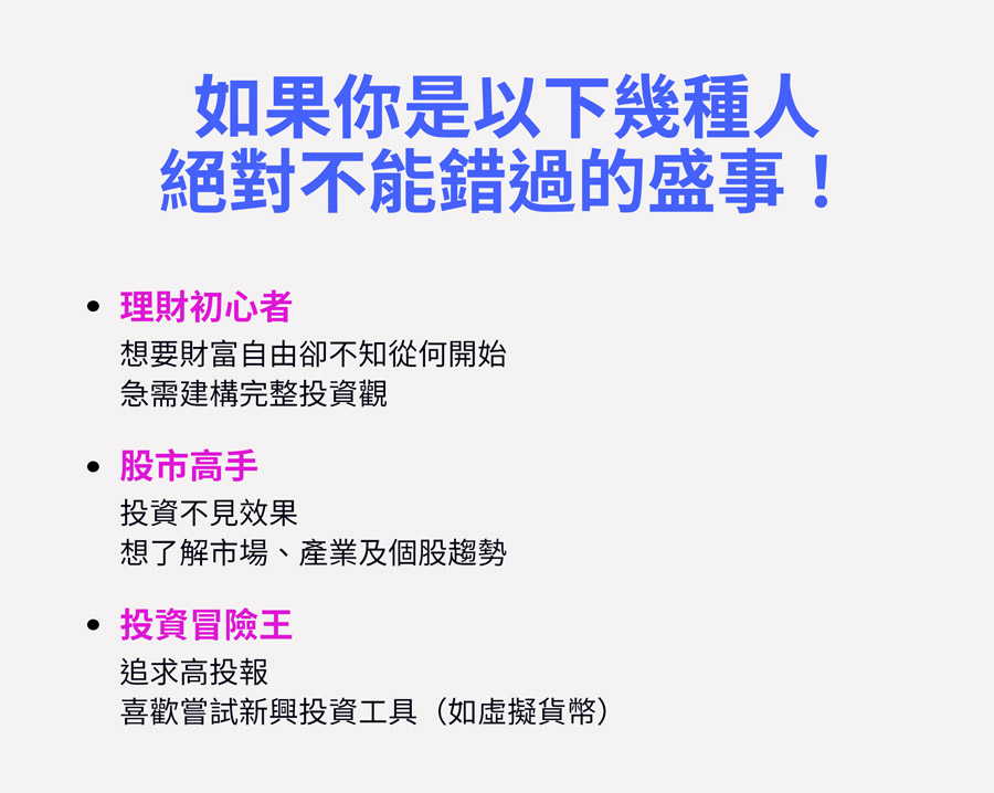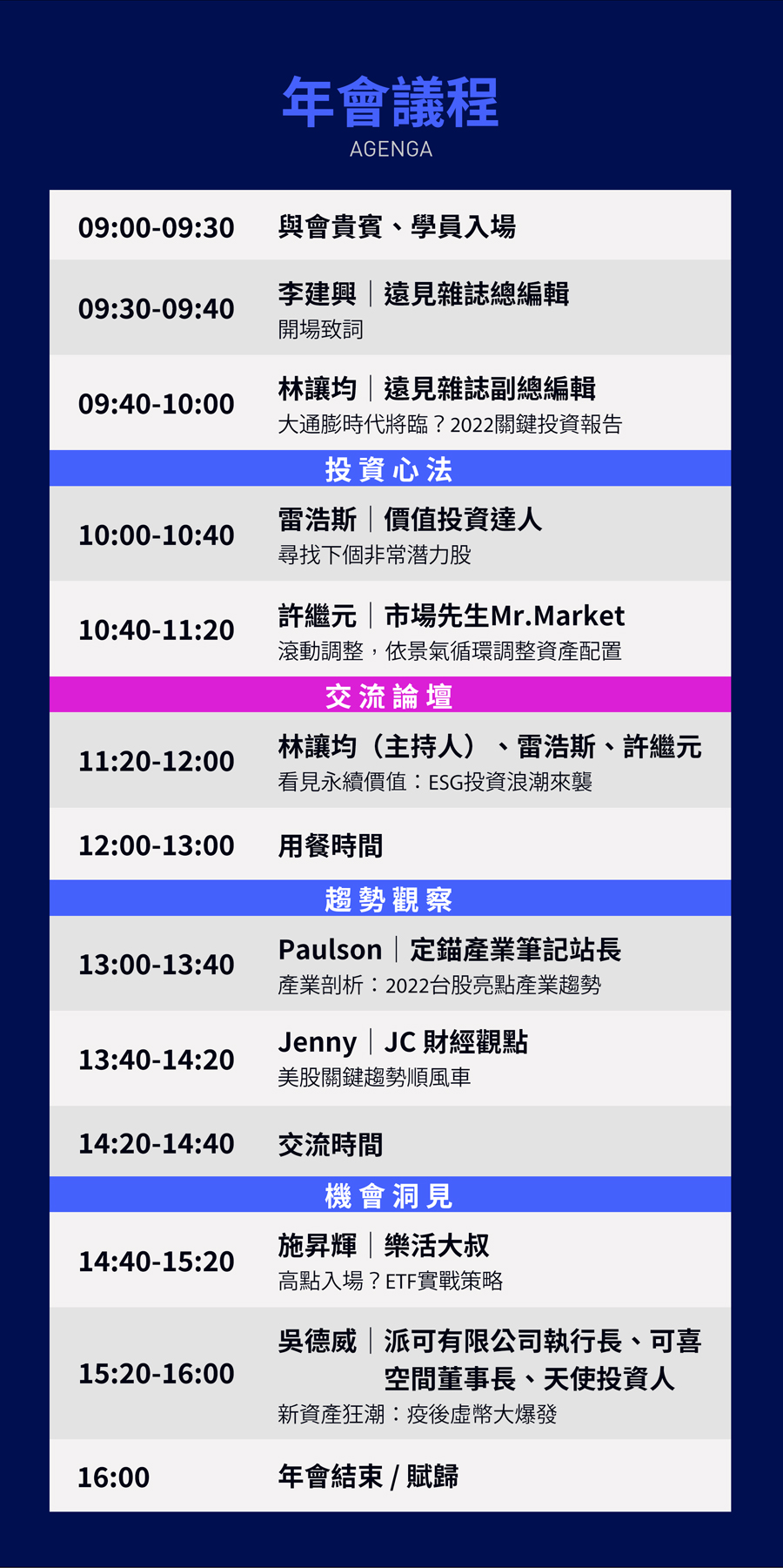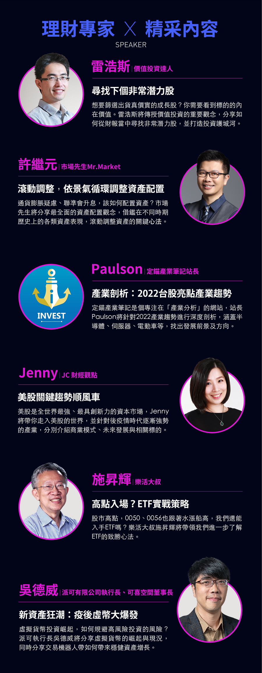 注意事項:活動當天憑電子票劵報到,現場不劃位。主辦單位保有調整活動時間、地點、議程、講師之權利。團體報名服務專線:+886-2-2517-3688 #882 朱先生。因應新型冠狀病毒,現場將全面升級防疫作業標準:主辦單位第一線工作人員將全面配戴口罩活動前,主辦單位將以酒精、清潔液消毒與會者請配合政府相關防疫規定,包含全程配戴口罩、測量額溫、酒精消毒、實聯制登記...等 (若超過37.5度,將婉謝入場)