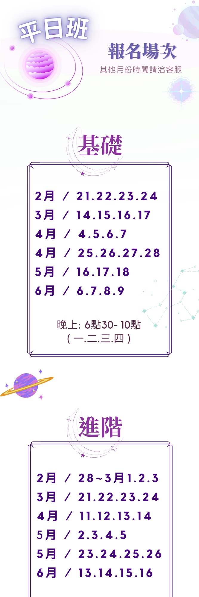 『 如已付款,時間不設限 』可改日期為下一次上課時間。