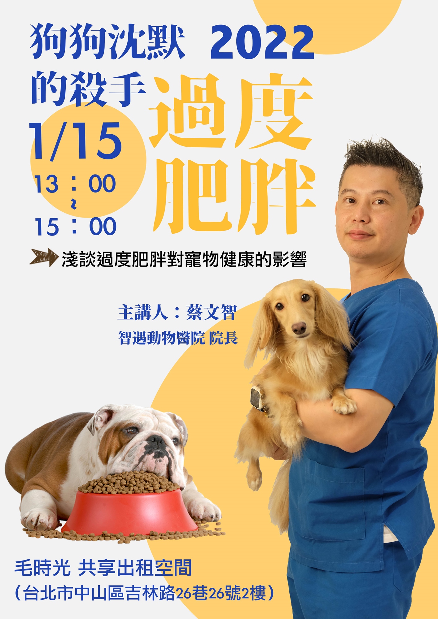 【寵老大】特別邀請 智遇動物醫院院長 蔡文智醫師共同舉辦本次講座,透過簡易的說明讓大家更能了解到毛孩過度肥胖的問題,推廣肥胖對寶貝身體健康帶來的影響與風險,打破「肥胖=可愛」和「吃雞蛋容易肥胖」這兩個不正確審美觀和迷思,提供大家正確的毛孩飲食觀念。