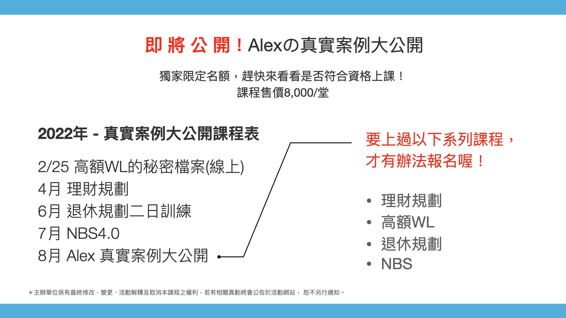*此課程需先具備基本的理財、退休觀念,僅限有上過以下課程的學員報名*