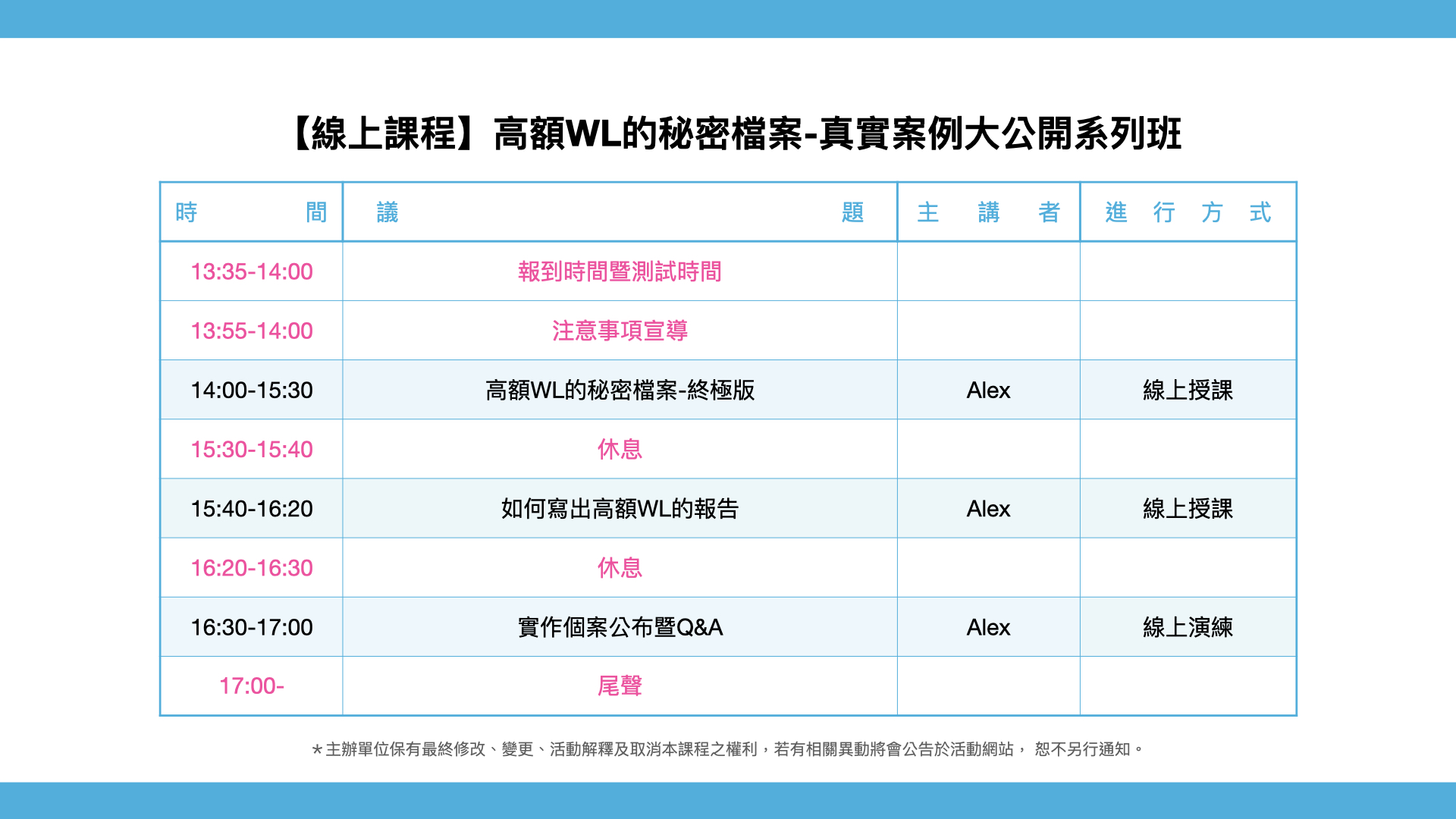5.主辦單位保有最終修改、變更、活動解釋及取消本課程之權利,若有相關異動將會公告於活動網站, 恕不另行通知。
