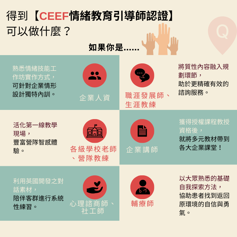 取得【CEEF情緒教育引導師認證】者,有機會合作項目如下: