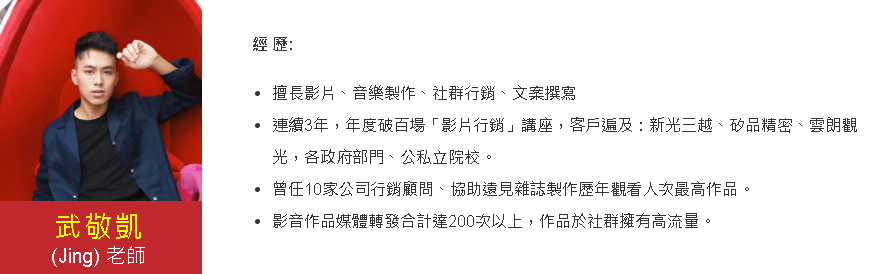 ▶擅長影片、音樂製作、社群行銷、文案撰寫