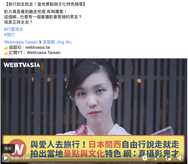 各領域的影⾳作品,合計被媒體轉發分享2百次 以上,作品於社群擁有⾼流量。