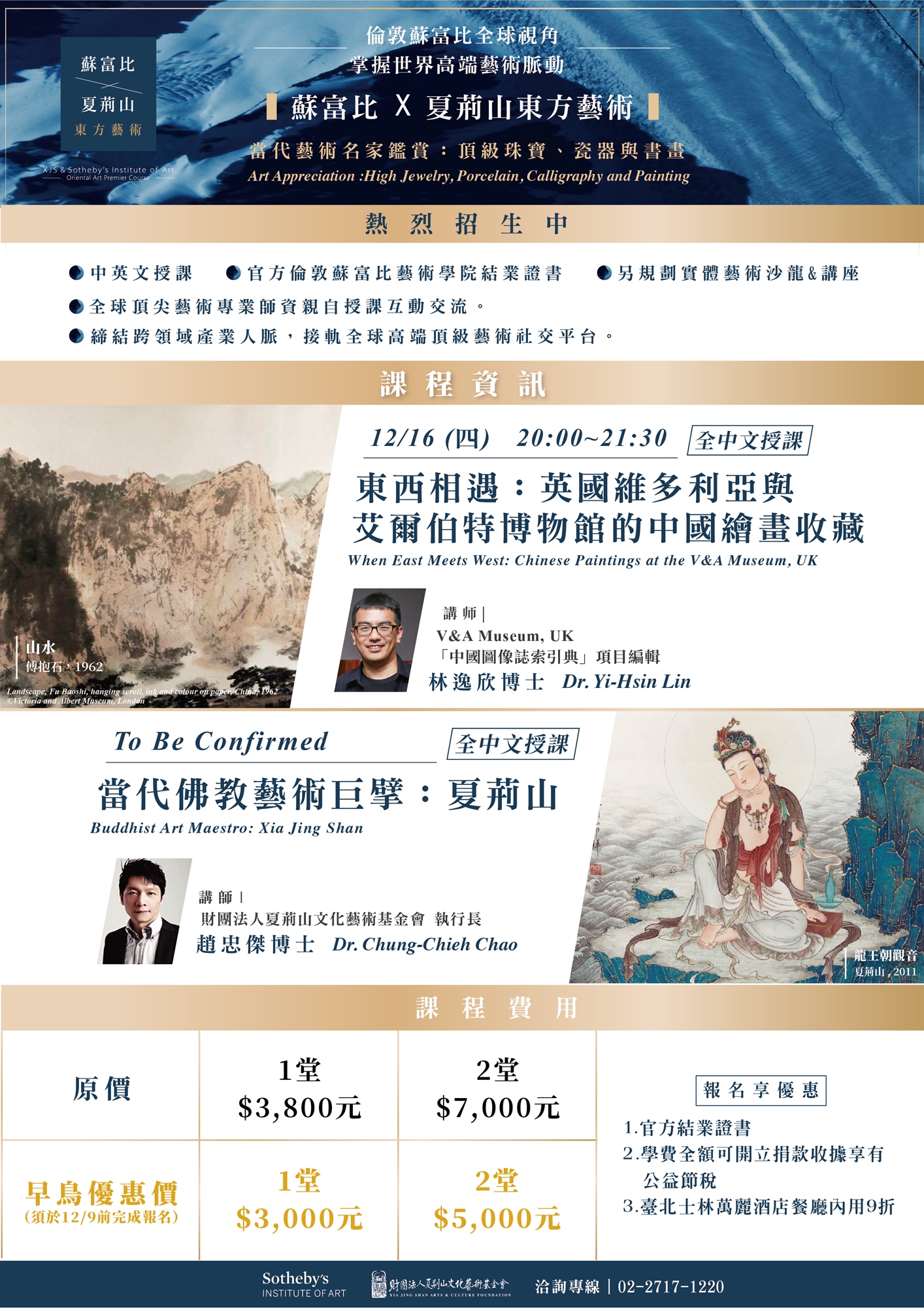 - 線上互動零距離:全球頂尖蘇富比專業師資,以全中文和英文雙語缐上授課。