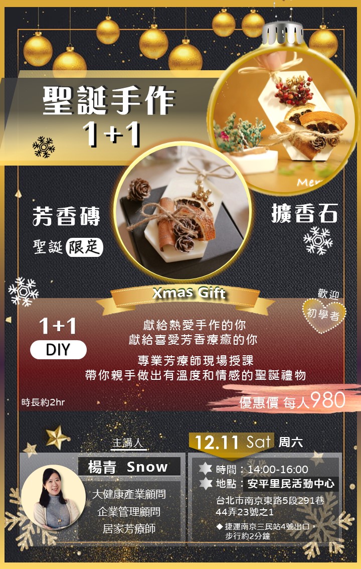 Snow老師在大健康領域累積超過20年以上的資歷,也擁有居家芳療師的證照