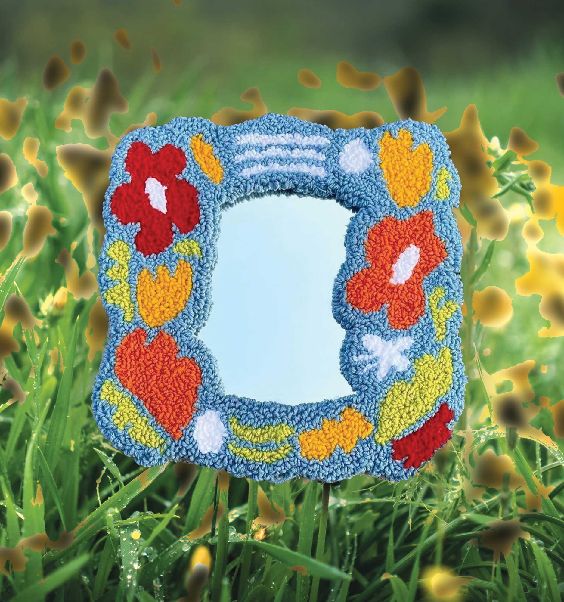 - 材料包內容:圖稿/毛線球數顆/木製框架/玻璃鏡子/木製木製戳筆/穿線器/消失筆/3M保麗龍膠/棉線/免洗筷/紙板/毛線固定黏布/收尾背布