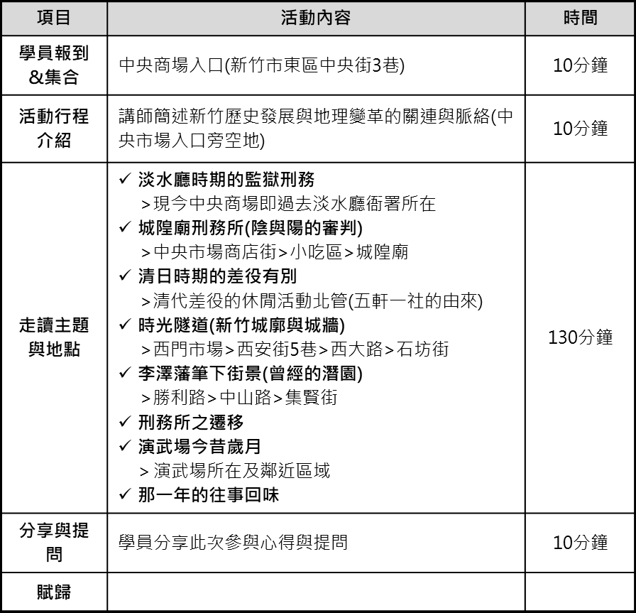 響應演武場重啟及推廣新竹歷史與風采,特別規劃教育推廣活動,邀請地方文史專家溫文龍老師,以名人領路的方式,帶領學員重回歷史現場,感受新竹城市豐厚的文化底蘊和人文深度。