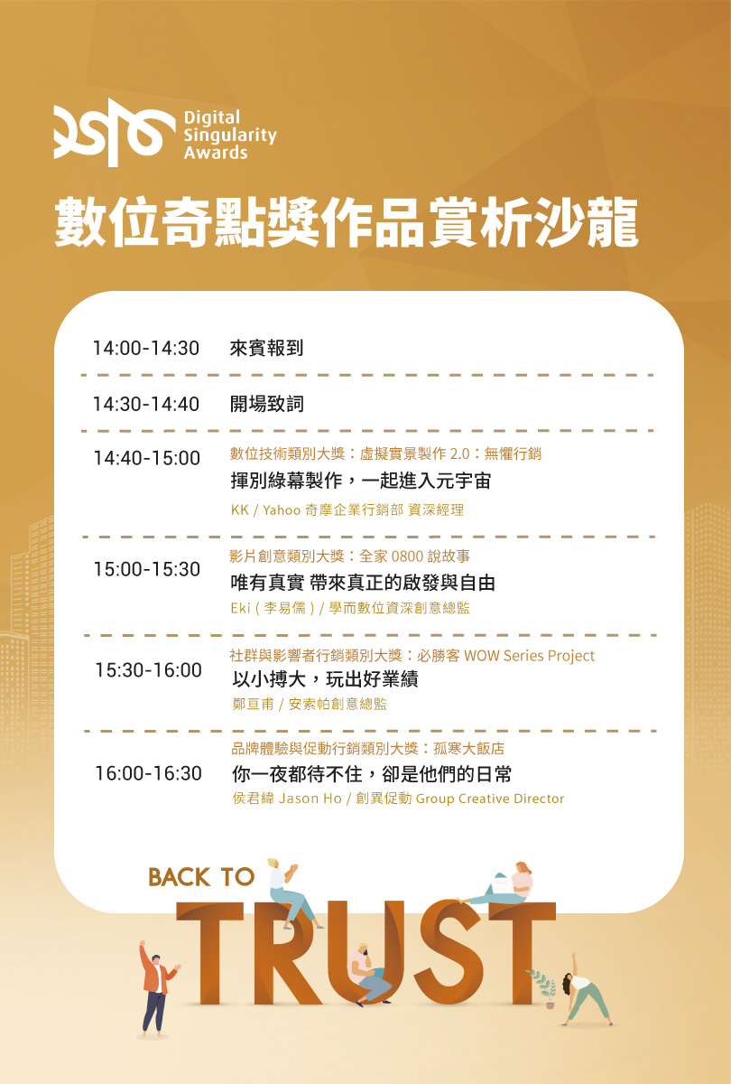 本次活動邀請四位類別大獎得獎團隊: Yahoo、學而數位、安索帕、創異促動,來分享他們的成功經驗與祕訣,內容精彩可期