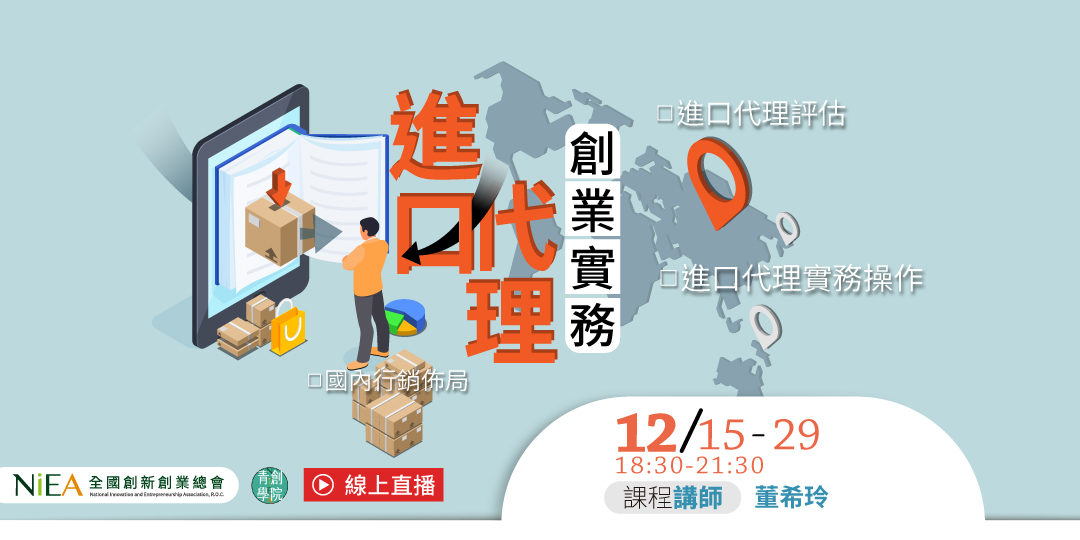 🚩 線上直播|進口代理創業實務 #1進口代理評估#2進口代理實務操作#3國內行銷佈局
