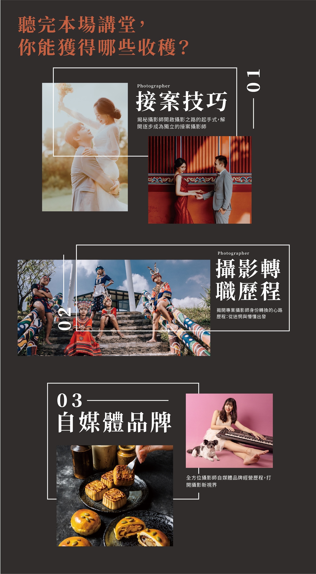 讓專業的獨立接案攝影師帶領你,揭開接案的其中秘辛與攝影接案的關鍵!