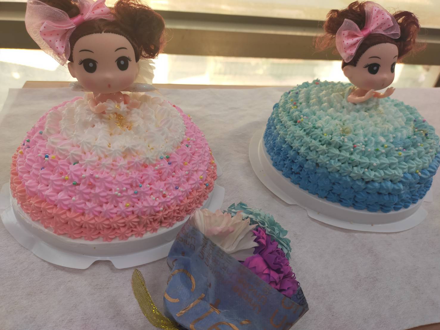 在擠上豆沙製成的粉色香檳玫瑰,簡單不浮華,
