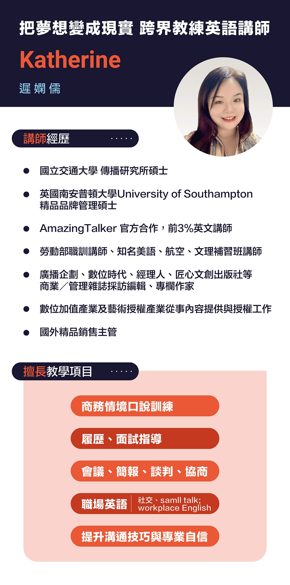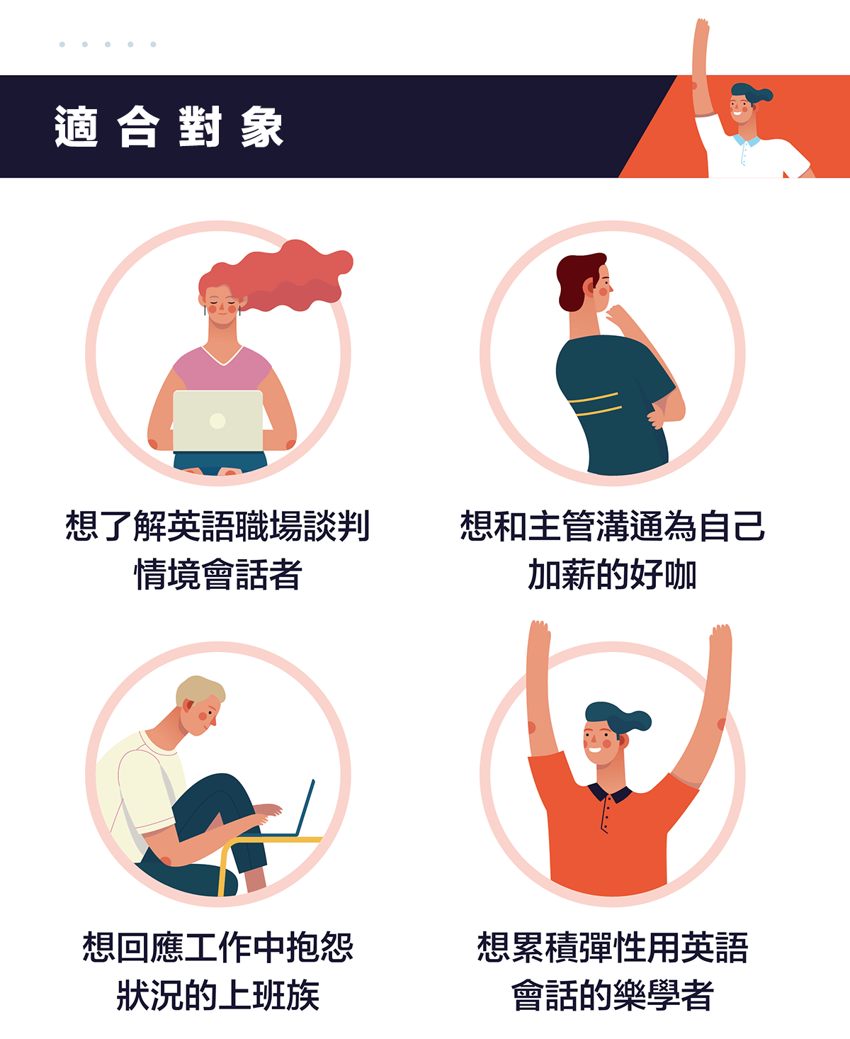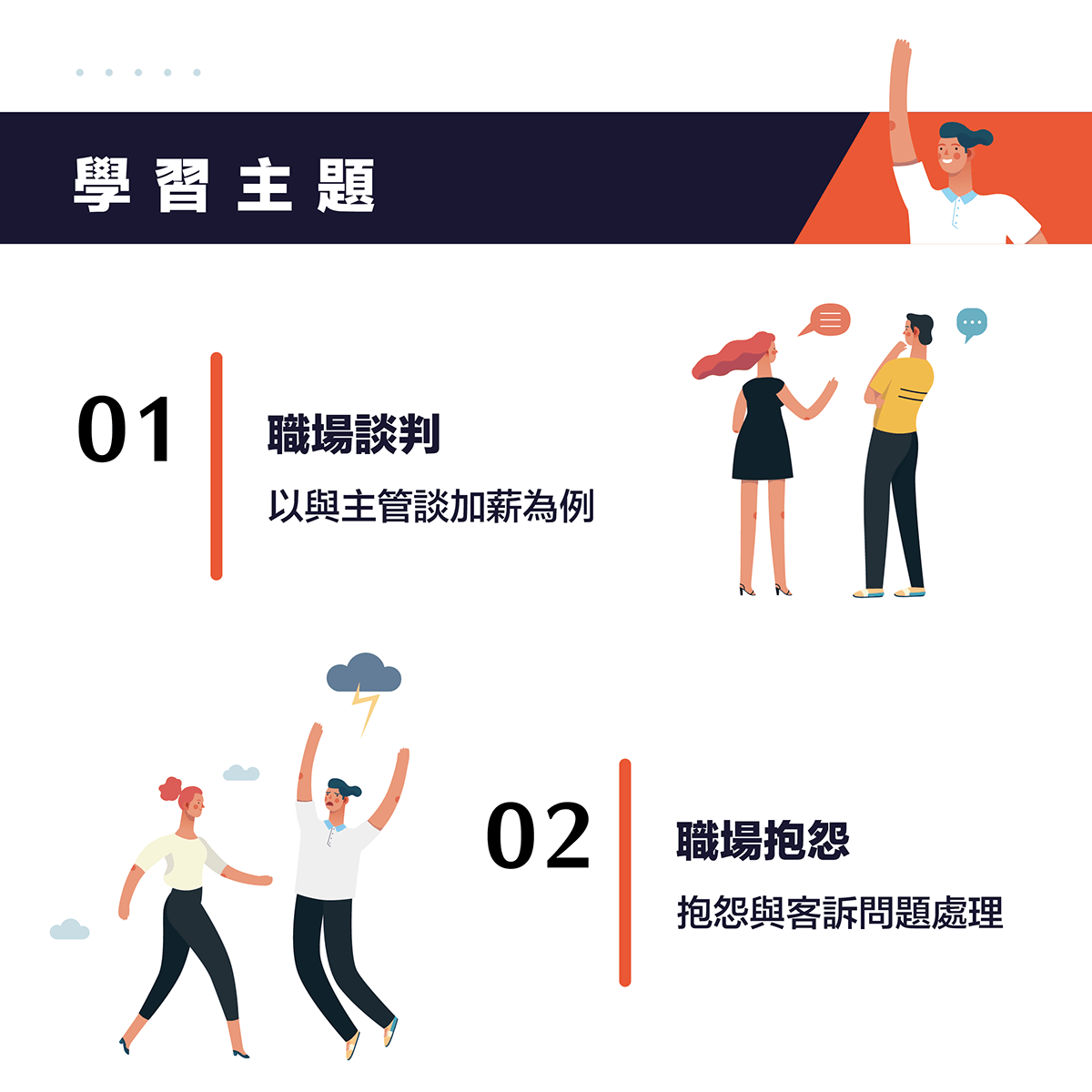 Katherine老師將以與主管談加薪為例,教你「職場日常談判」,以及工作中常見的「抱怨及處理抱怨」兩情境帶你學會英文相關實用單字、句型,同時也能增加準備多益考試時,累積更多不同職場實務應用情境