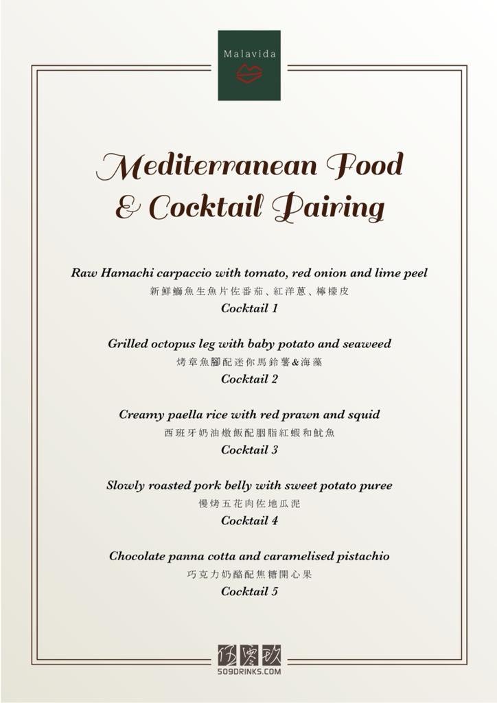 這次的主角是調酒,我們的主廚Lucas將會為我們準備5道精心設計的地中海美食,每一道料理搭配1種調酒,神秘的調酒,完美搭配不同的地中海經典料理,帶領每一位貴賓體驗一場難忘的夜晚。