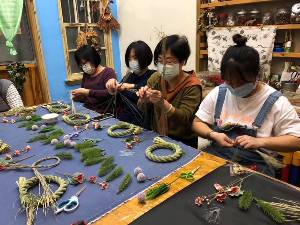 課堂內容包含稻草編織注連繩、縫製代表虎年的虎仔爺小布偶,最後將兩者結合,製成滿滿心意。